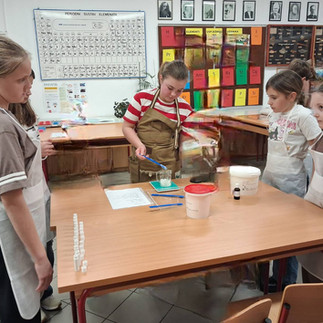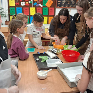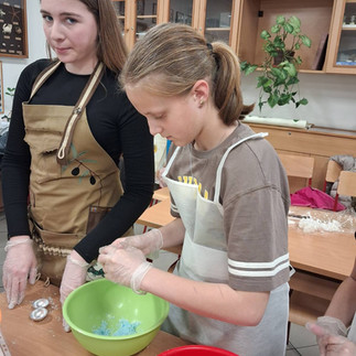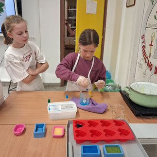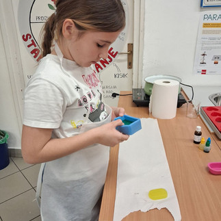 Nakon uvodnog dijela, radionica je prešla u praktični segment u kojem su učenici, uz podršku starijih učenica i voditeljice, izrađivali vlastite proizvode. Tijekom rada izrađeni su njegujući balzami za usne, raznobojni sapuni različitih oblika te mirisne šumeće kugle za kupanje. Učenici su sudjelovali u svim fazama procesa – od mjerenja i miješanja sastojaka do oblikovanja i pakiranja gotovih proizvoda.